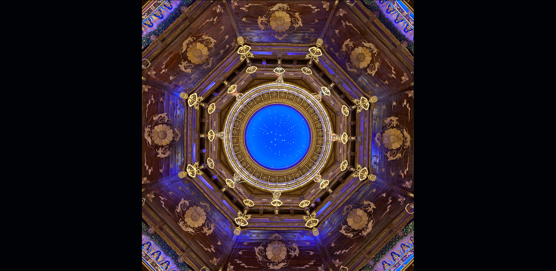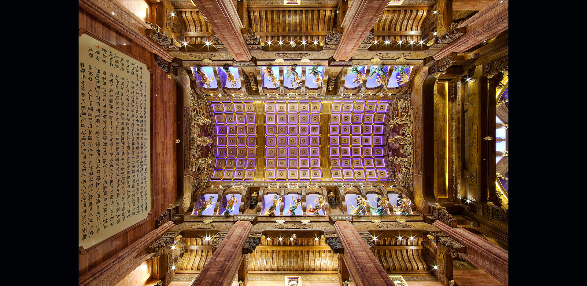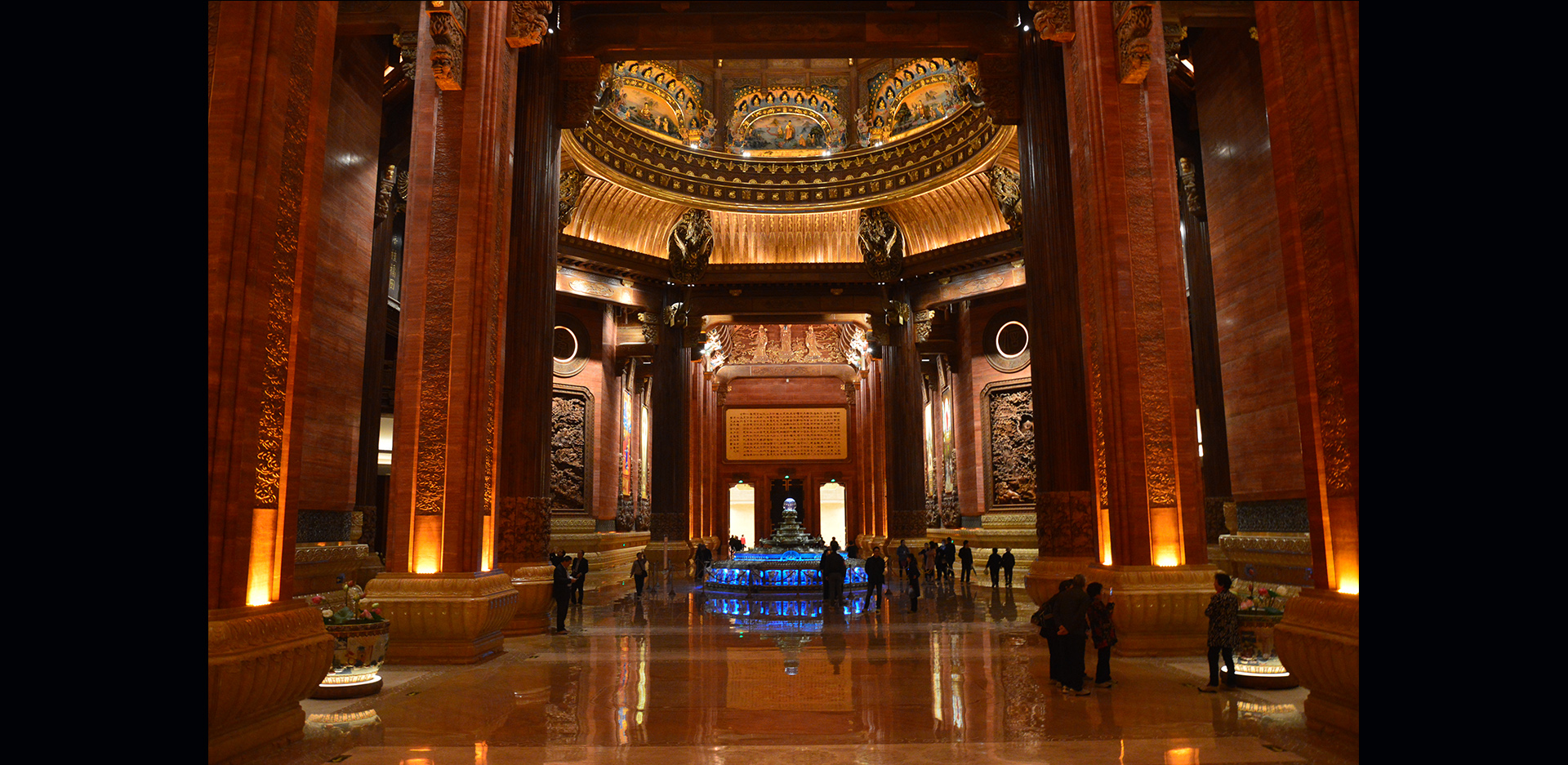 坐落于烟波浩淼的太湖之滨,钟灵毓秀的灵山脚下。灵山梵宫内部由廊厅、塔厅、圣坛三大部分组成。