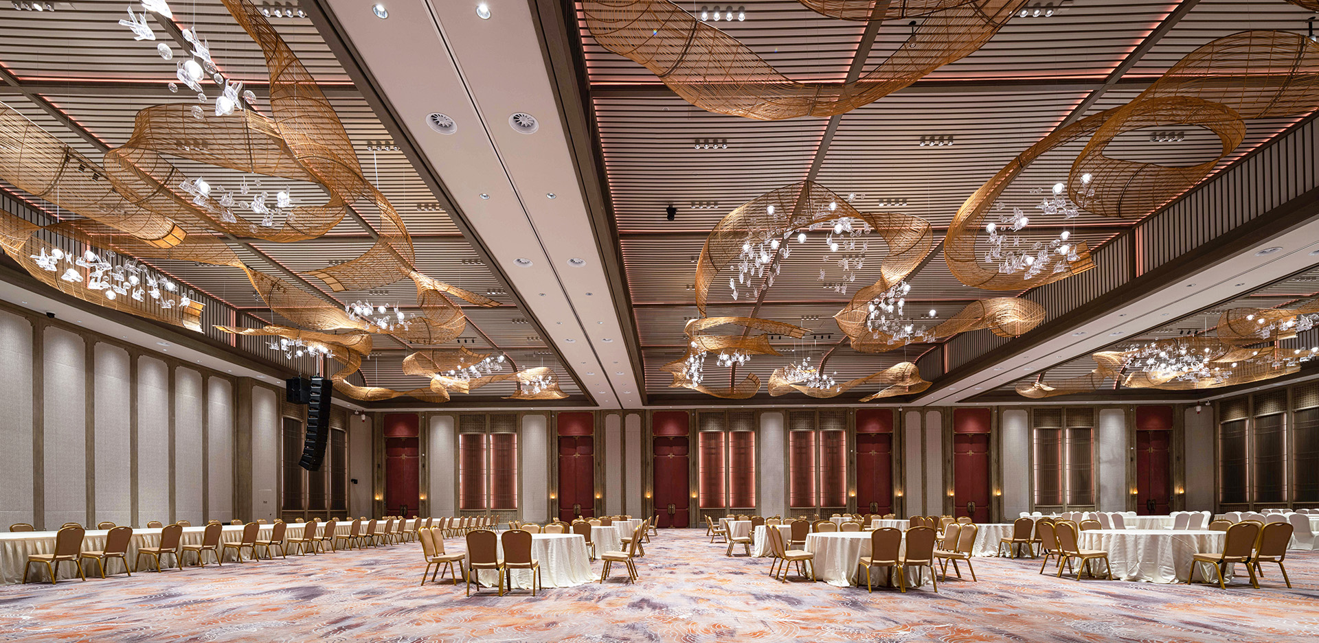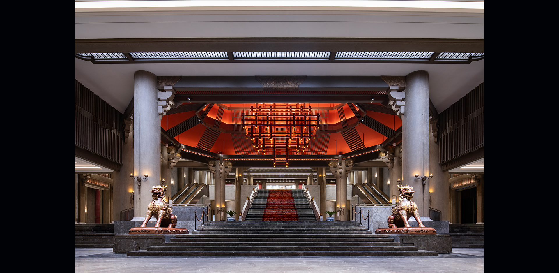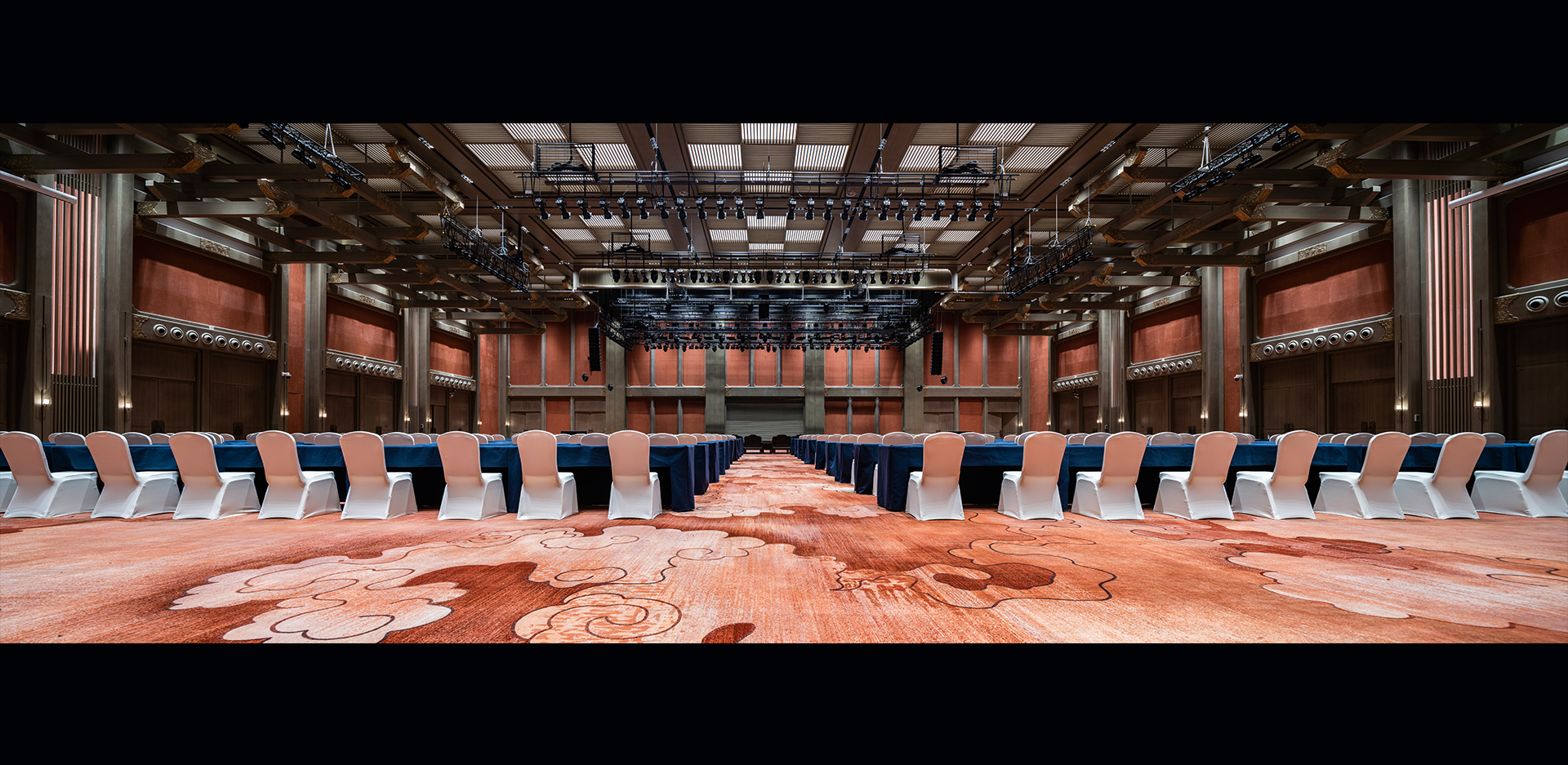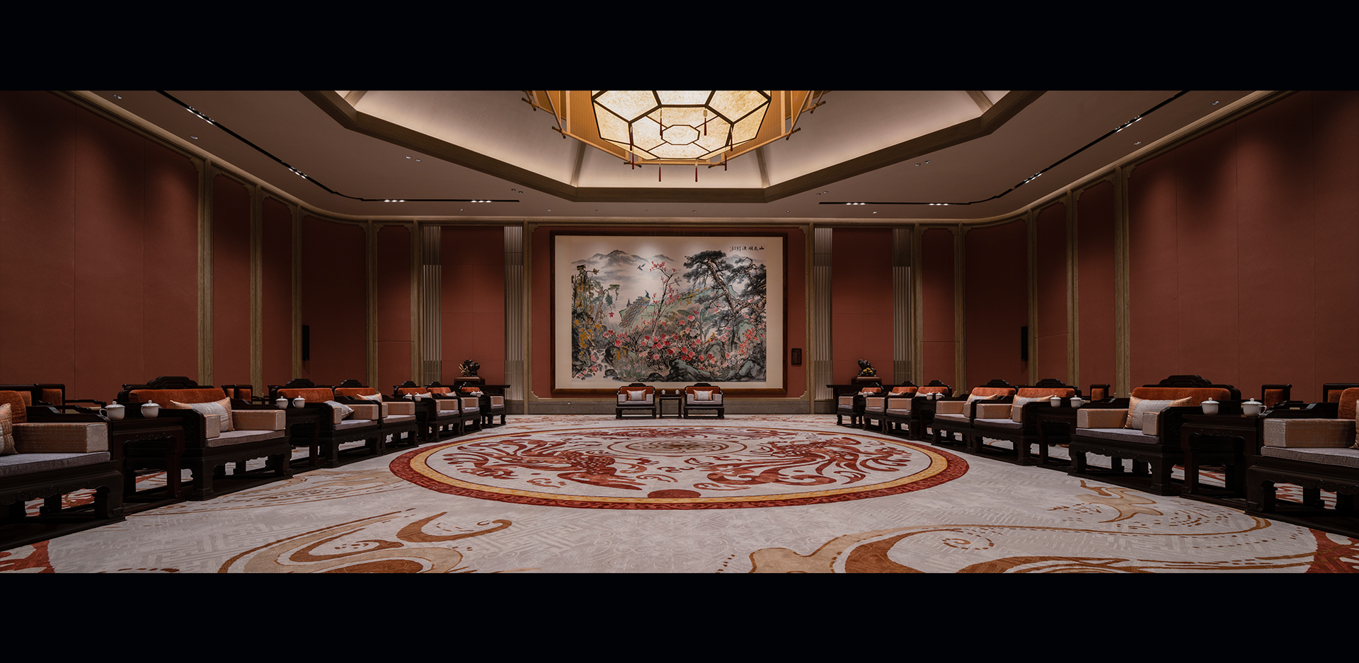 尼山会堂位于尼山圣境核心景区孔子圣像的西南部,总建筑面积约3.2万㎡。会堂室内共五层,包含可容纳两千人的主会场、六个可容纳一千人的会议室、可容纳一千人的宴会厅、以及会客厅、门厅、茶室等空间。尼山会堂采用廊柱、穹顶等建筑手法,集合厅、台、殿等中国传统建筑形式,灯光设计在体现空间结构及装饰特色,营造良好舒适、儒学精神及文化内涵的室内氛围的同时,参考国际会议接待的标准,对各空间进行灯光规划设计,并且采用多场景设置,满足高规格会议接待的同时,兼顾日常普通会议、演出活动等多使用需求。尼山会堂是尼山世界文明论坛配套工程中的重点工程之一,同时作为2020年第六届尼山世界文明论坛的举办地,也将成为尼山世界文明论坛永久会址。