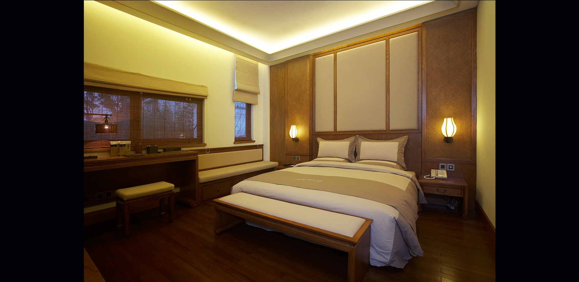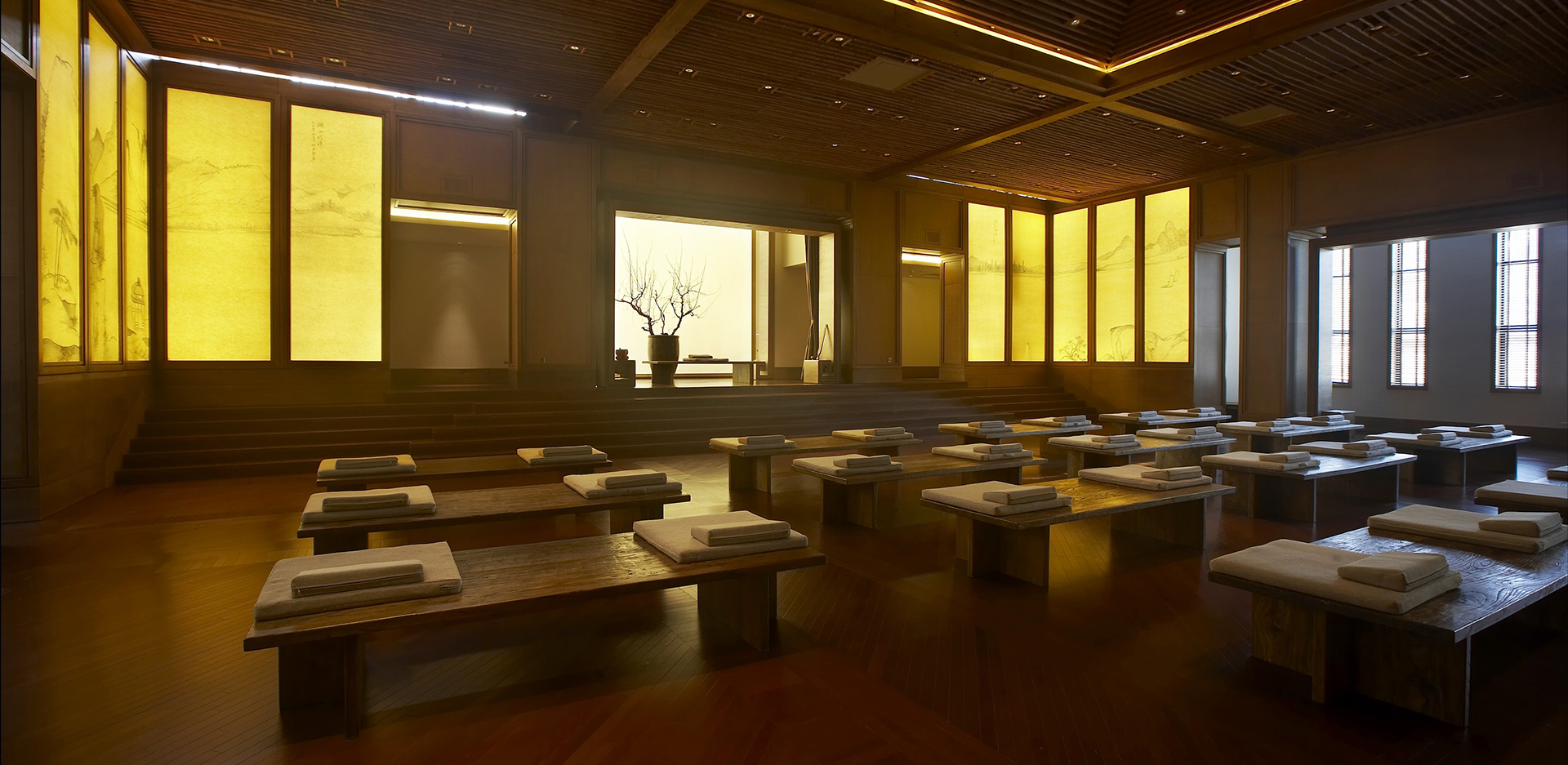无锡灵山精舍座落于灵山梵宫东畔,古朴、精致、淡雅、山水丛林中,一抹粉墙黛瓦,带给您别具一格的禅意体验。借助建筑与照明的相互影响来体现禅文化,主次分明,做到照明与装饰并存的艺术效果。采用节能的光源和高效的照明器,科学合理地运用照明控制。使照明设施与室内装饰的融合,充分展现安静舒适的环境,以及精致“禅的气息。