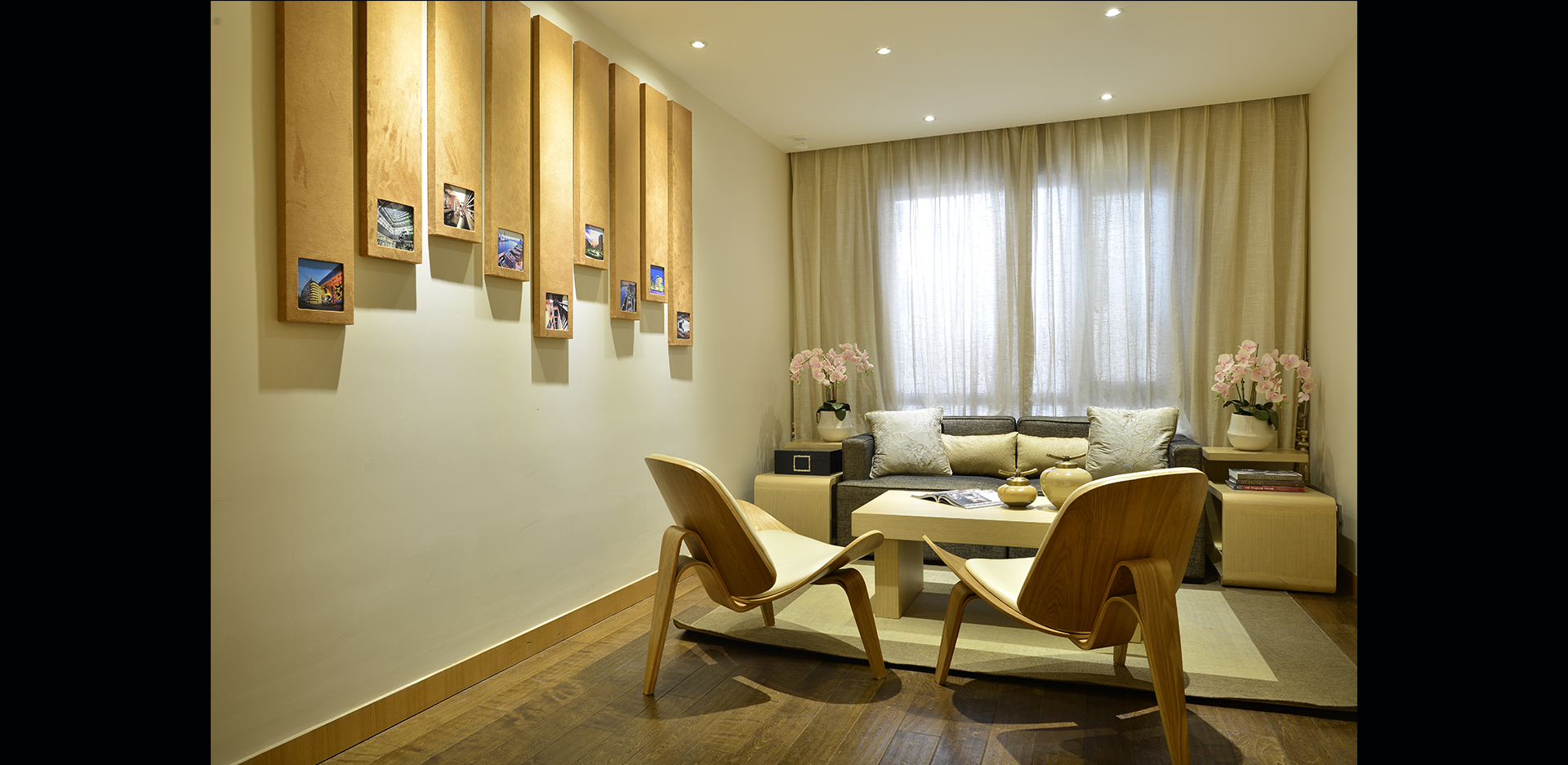 休闲区照明设计区别于传统售楼处的商业化与单一性,旨在营造安静舒适,气氛优雅的交流空间,虚实的照明手法结合可移动隔断,即保证了客人的私密性又延续了空间的流畅感。