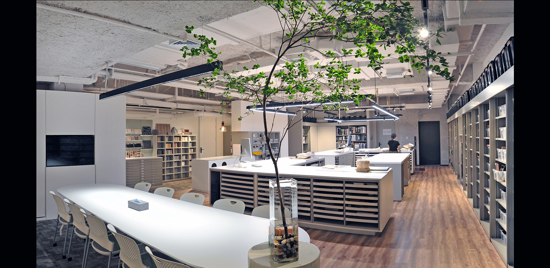 联合设计办公室的整体改造参考WELL2的认证标准,在遵循绿色建筑的理念之外,更兼顾使用者的体验感、幸福感。其中灯光改造以打造更高效、更舒适、更智能的健康建筑为宗旨,灯光设计师在办公室的改造中将灯具与控制系统紧密结合,通过日光补偿、感应控制、动态节律、自动时序等多种手法,充分体现“人因照明”的设计理念。